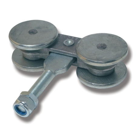 Hängrulle 307 max 2000kg för skjutport med metallram. Permanent smorda kullager. Stålhjul. Passar till skena 307. Infästningsbulten är 20x86 mm.