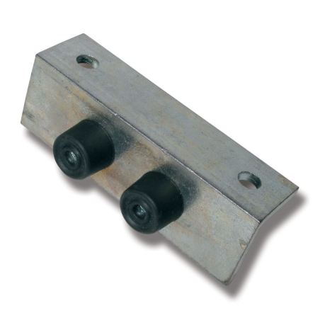 Väggstopp 107 dubbel. Kraftig henderson väggstopp i förzinkat stål försedd med 2 styck gummibufferts. Monteras på vägg. Lämplig för medelstora portar. Vid tyngre portar monteras två stycken.