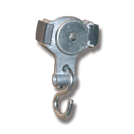 Hängrulle för draperier och presenningar mm. Stålhjul. Komplett med gummibuffertar för att rullarna inte ska haka i varandra. Även S-krok medföljer. Används med skena Henderson 290
